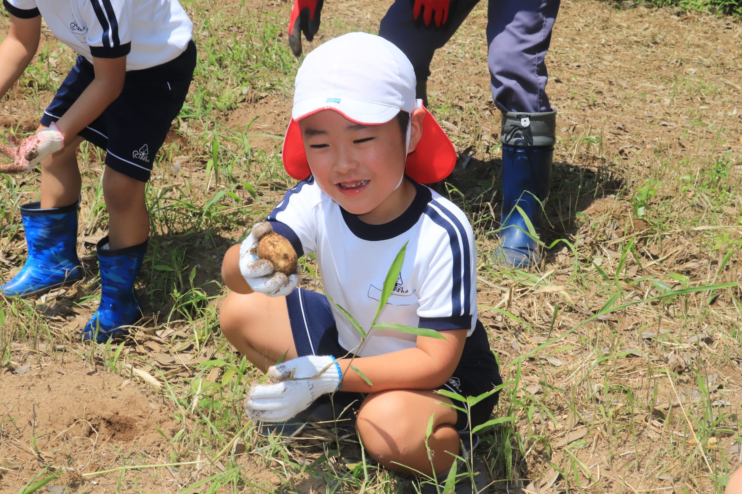 幼稚園の畑で育ったじゃがいもを掘り、お給食でいただきます。