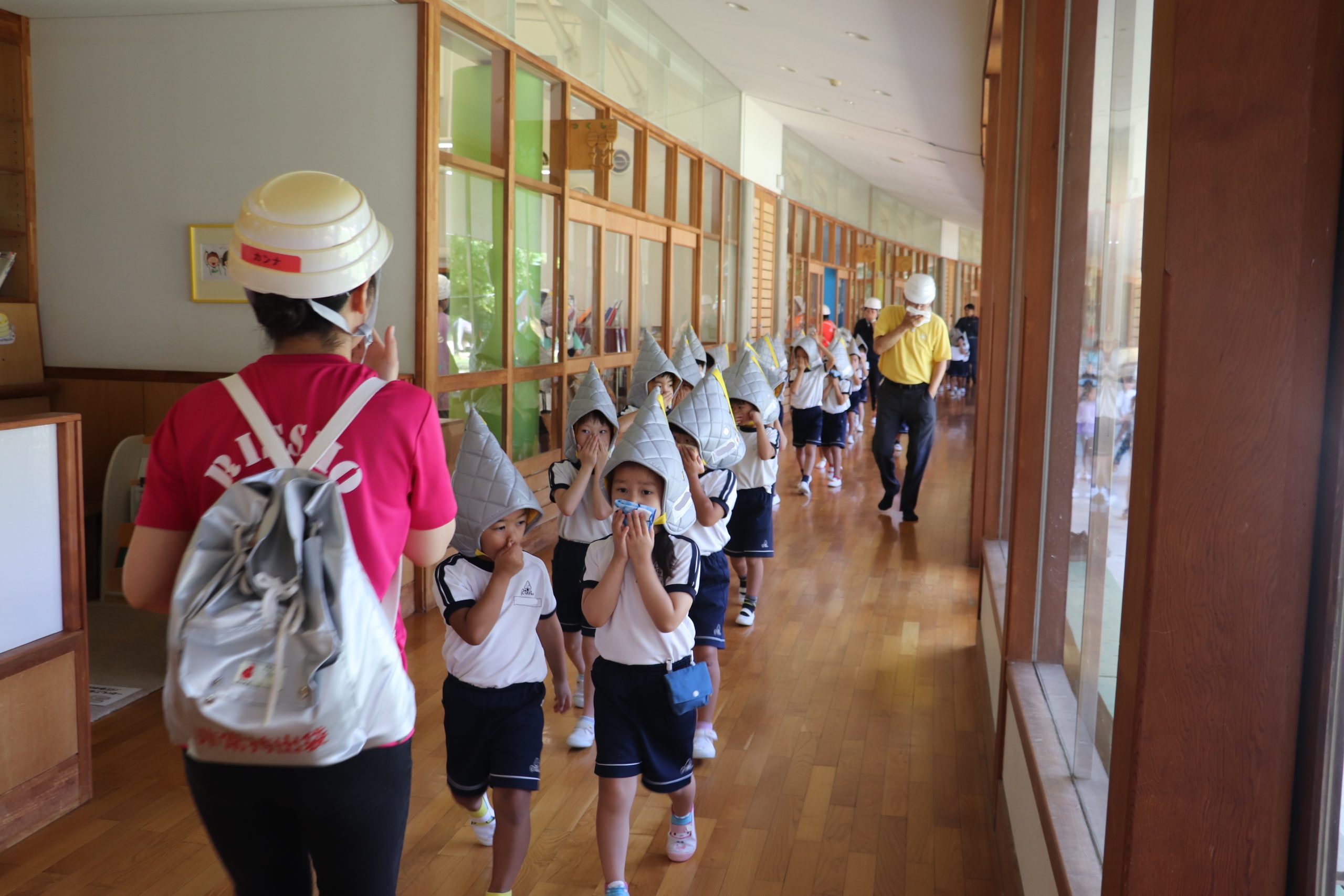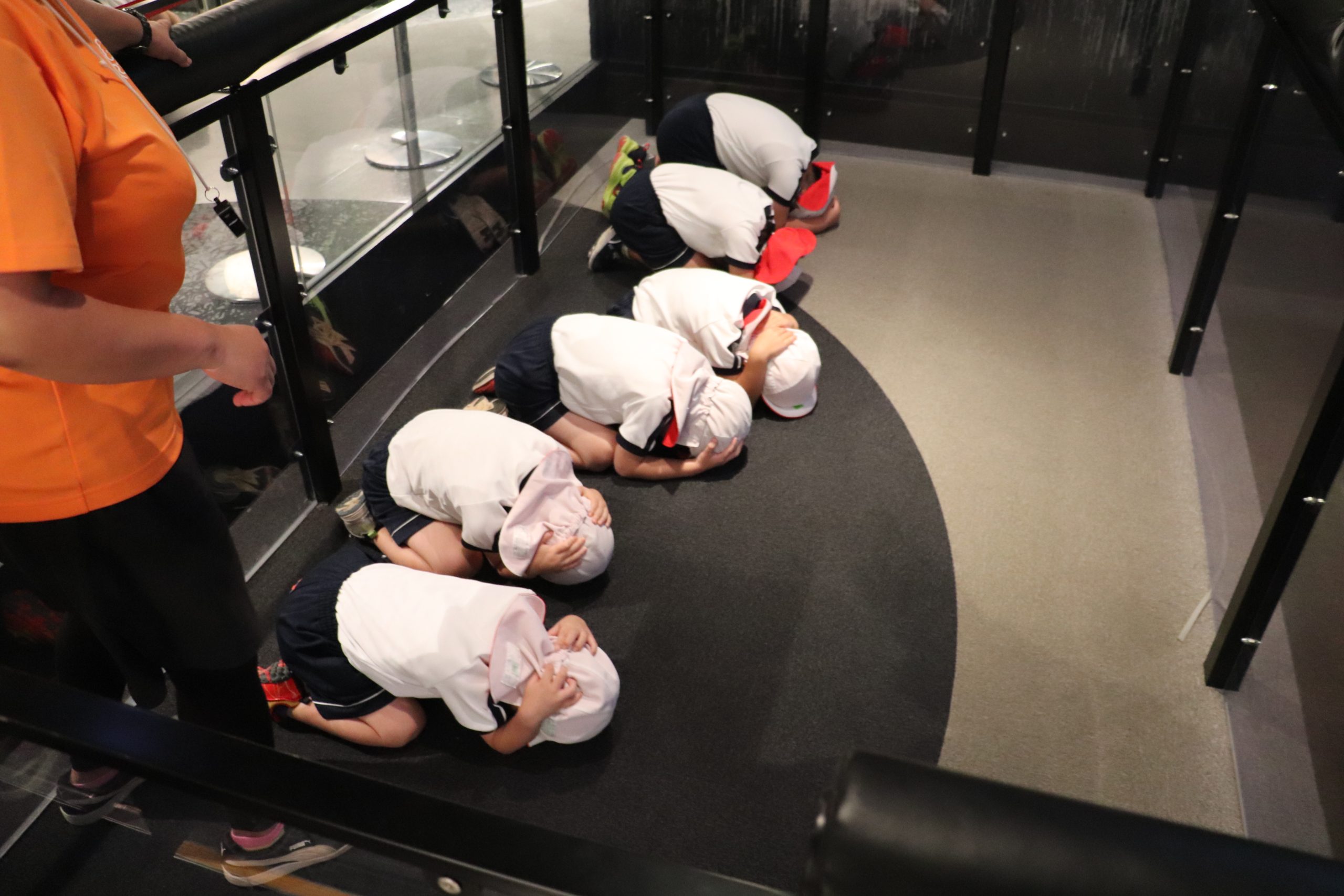 いざという時に自分の身を守れるように避難訓練をします。