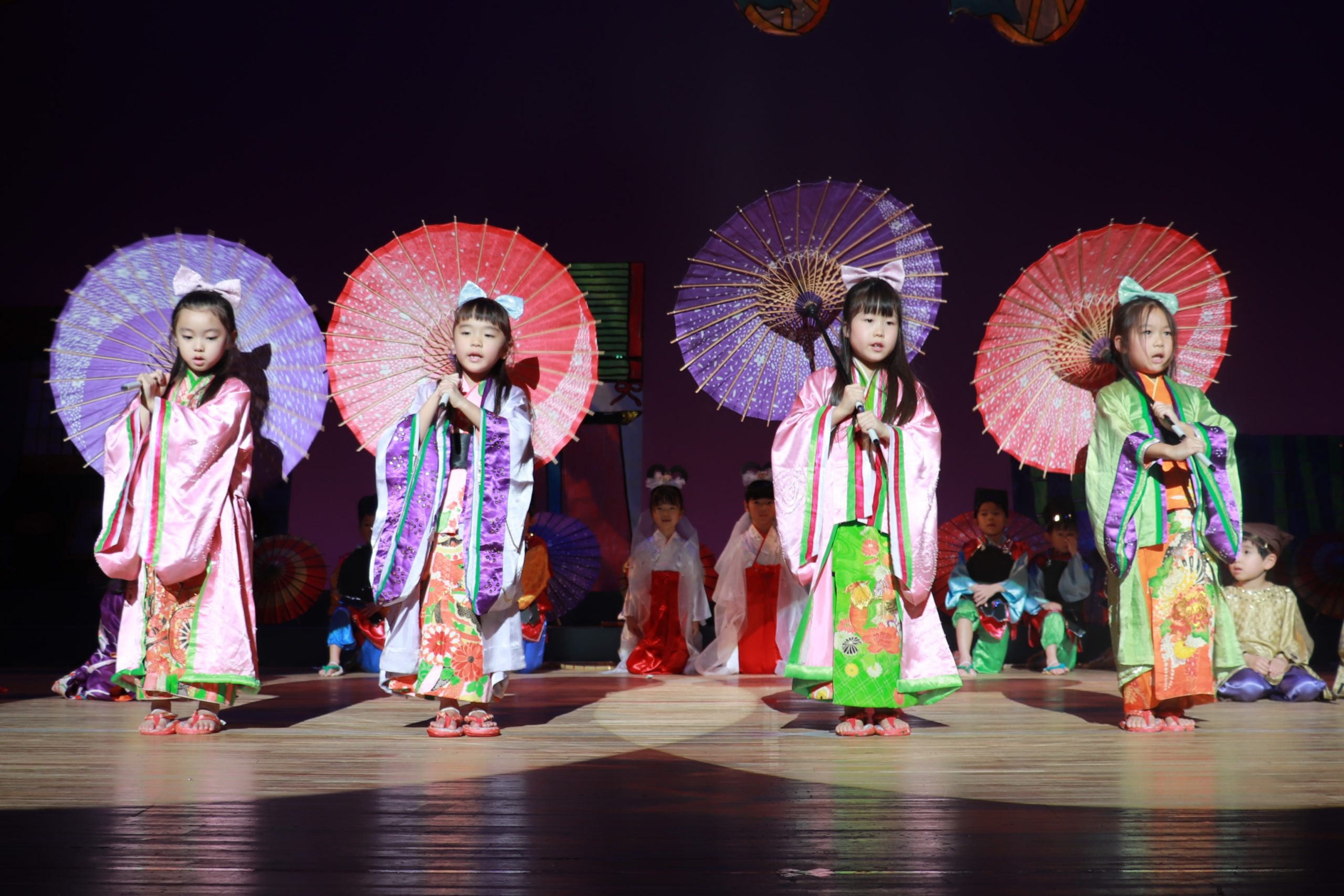 さくらめいとの大きなホールでお遊戯や劇、お歌の発表をします。