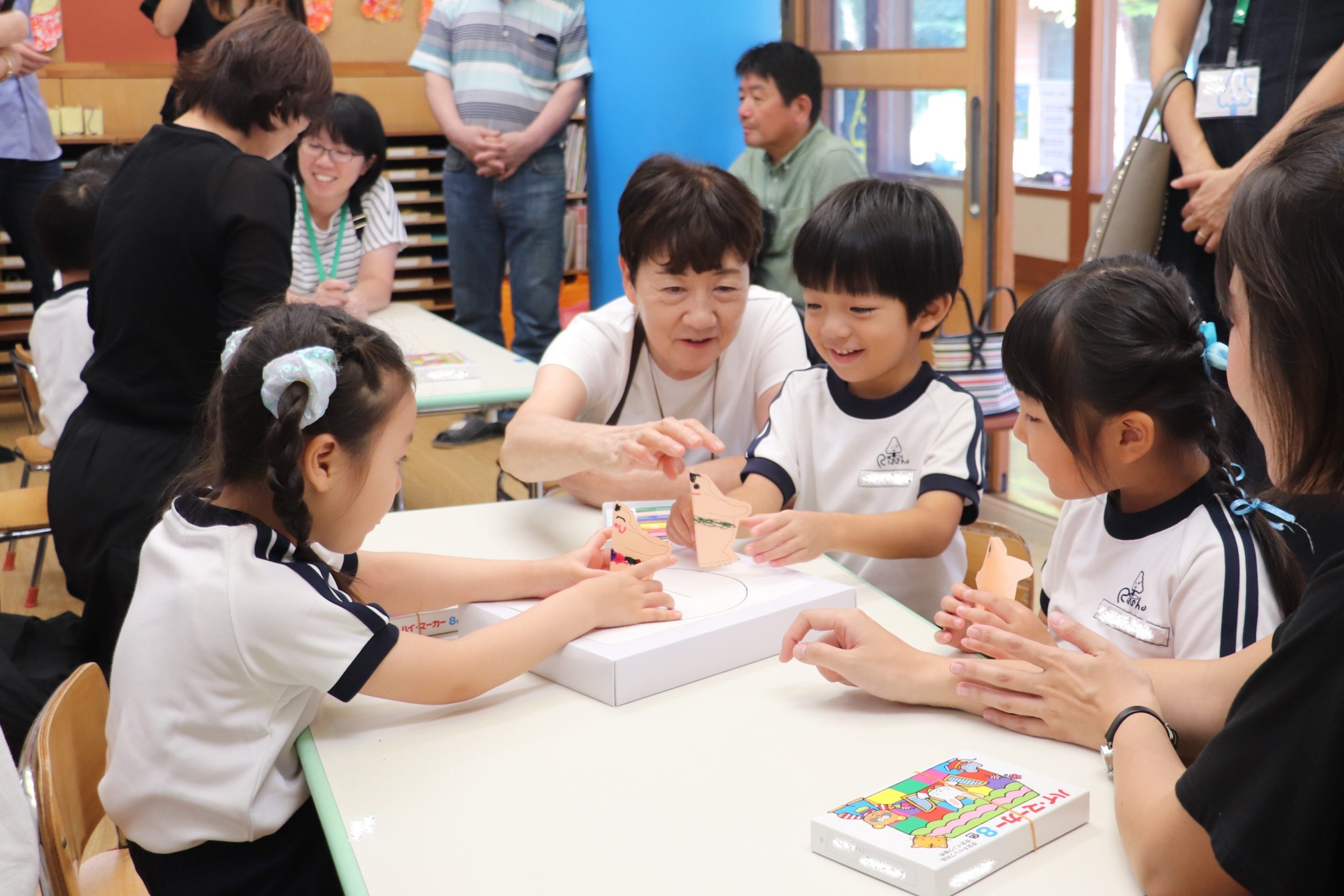おじいさま、おばあさまと一緒にふれあい遊びをして楽しみます。