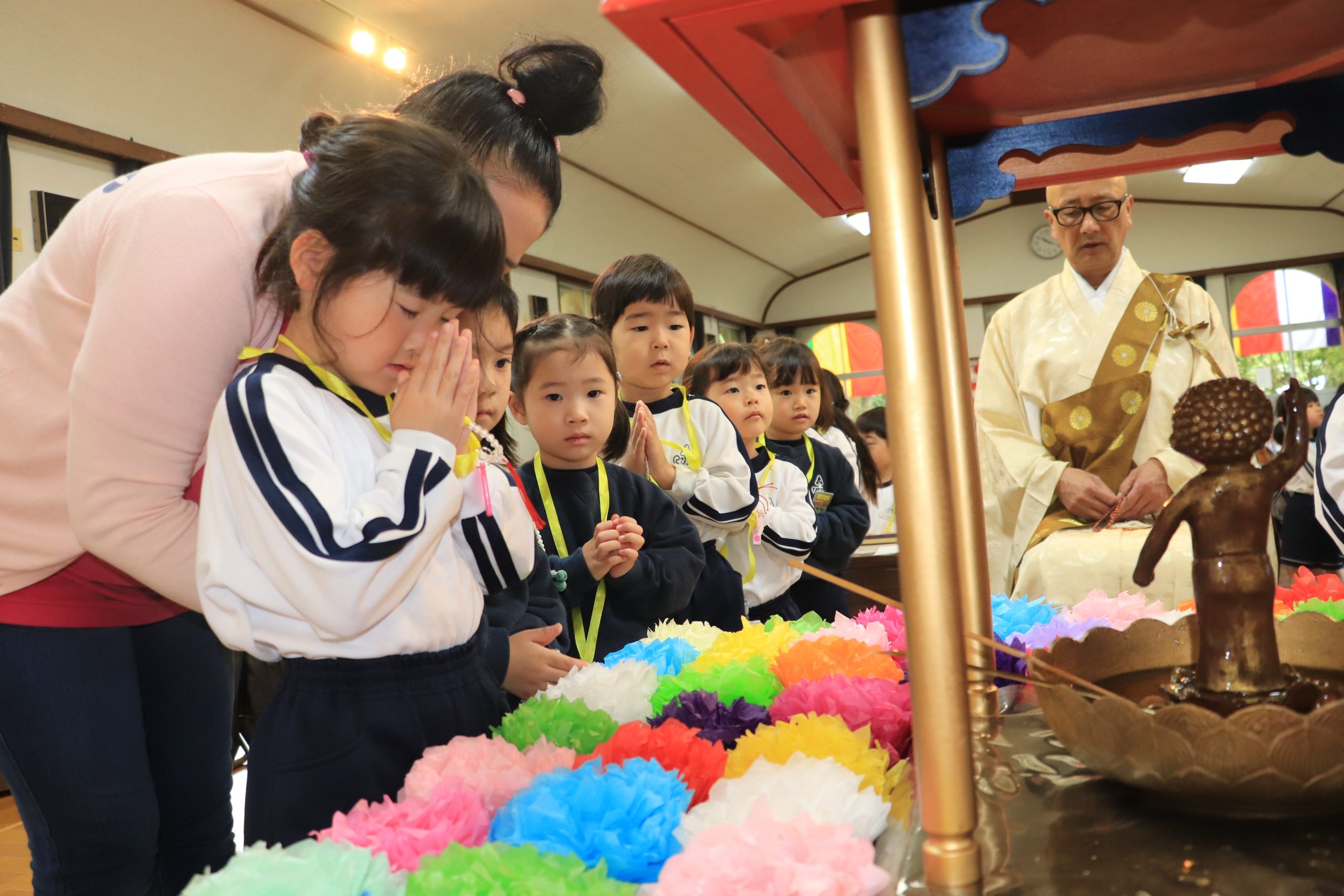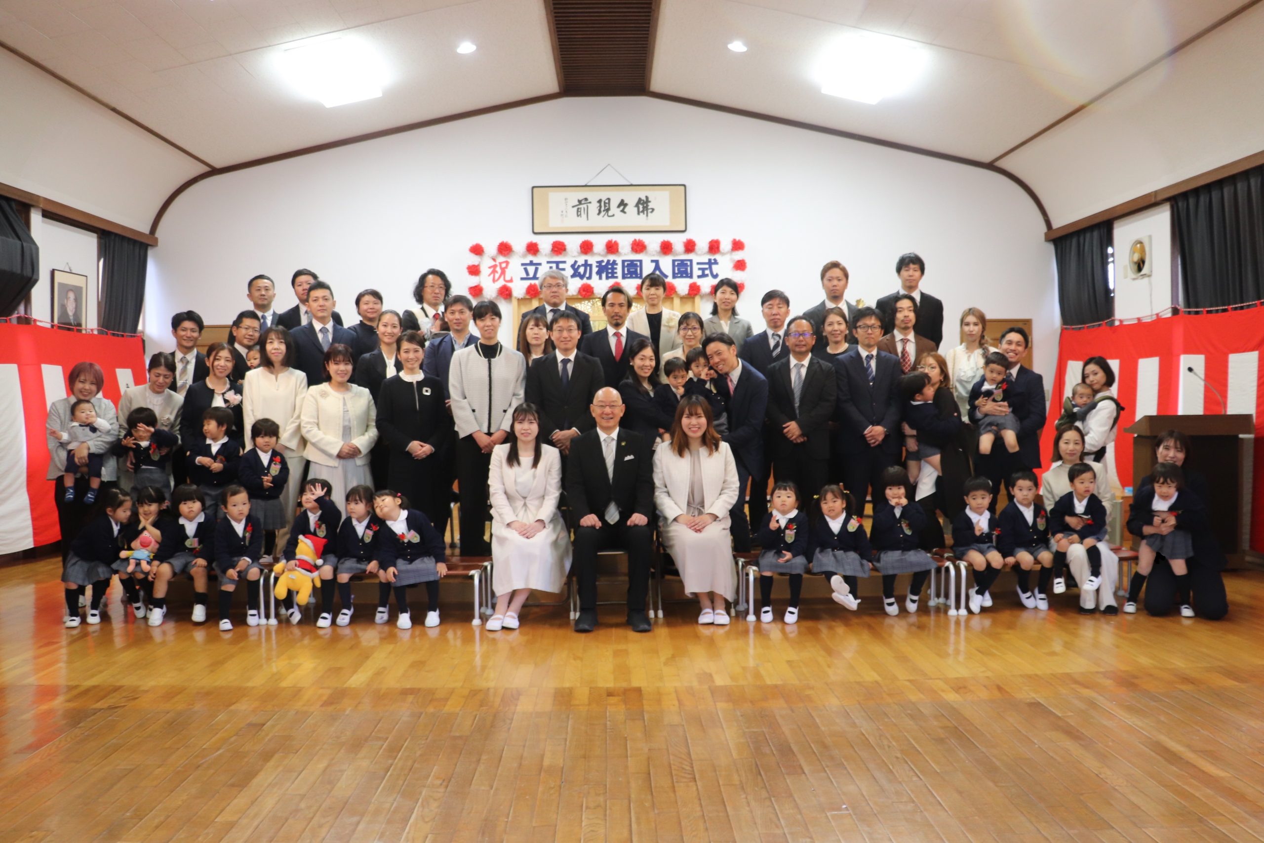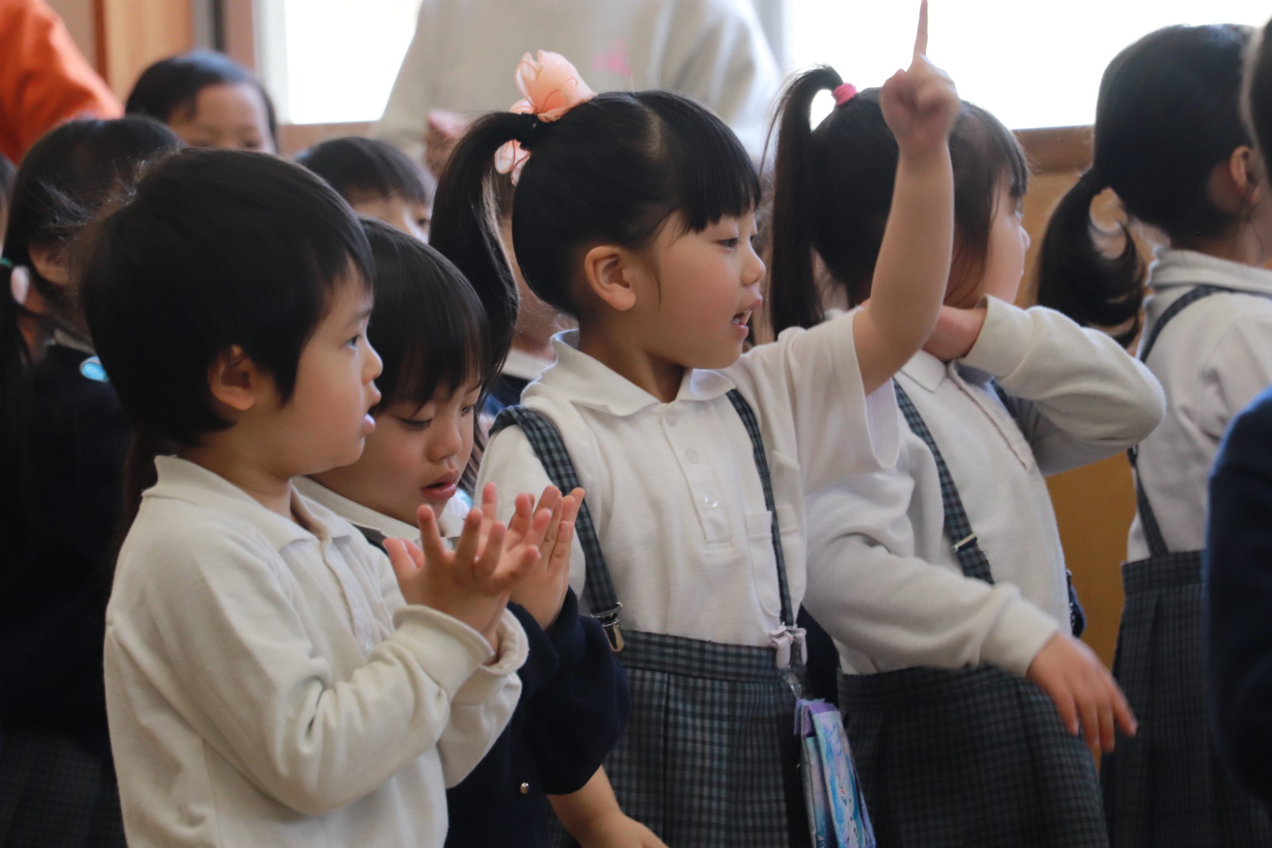 桜舞い散る春、入園したばかりの年少のおともだちはちょっとドキドキ、一学級おにいさん、おねえさんになった年中、年長のおともだちは新しいことにワクワク!