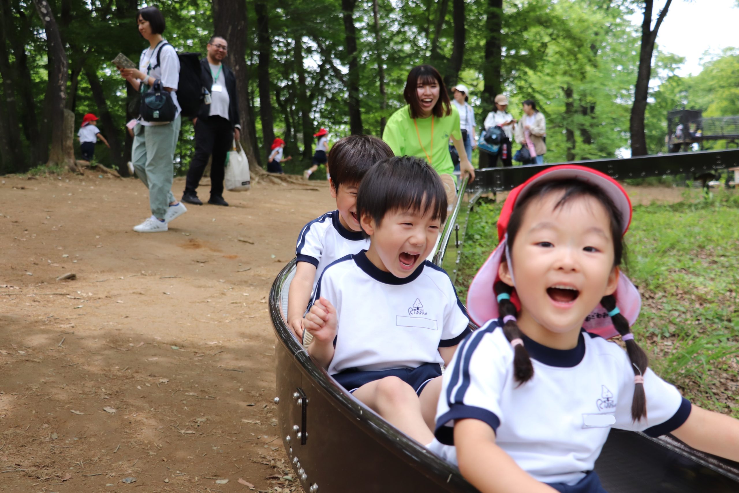 年長児は森林公園に、年中少は高坂の動物園へ遠足に行きます。